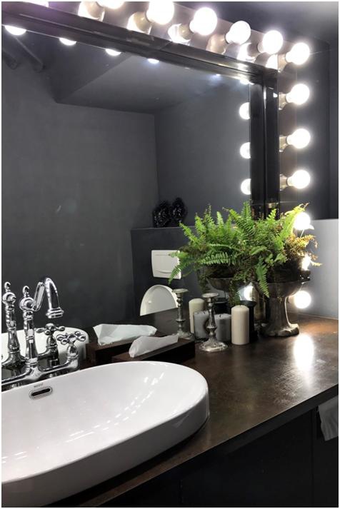 走上樓梯往二樓,突然變成充滿情調的紅色空間.可以透過玻璃看到樓下的狀況,有點像是一個隱藏的空間.廁所同樣的呼應樓下的空間,充滿濃濃的法式風情.設計上有一點點的小巧思,打開門要關上才會自燃燈亮.