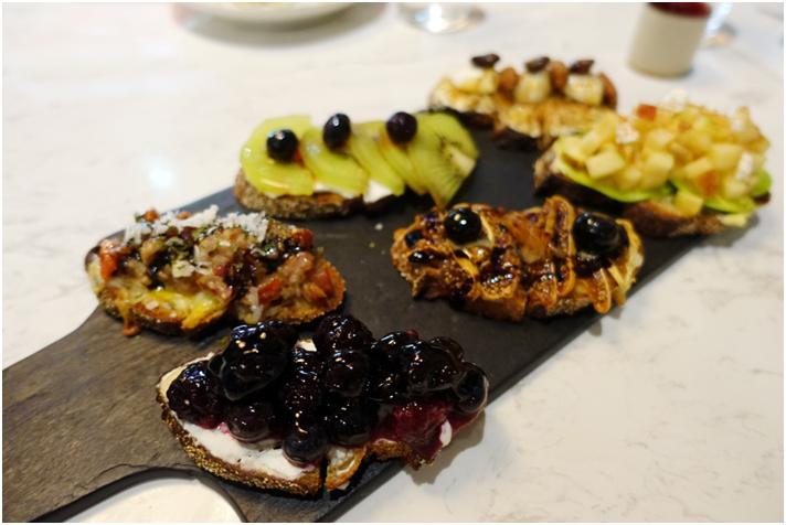 前排左到右:綜合莓果乳酪起司,藍莓無花果藍紋起司,酪梨蘋果松子菲達起司.