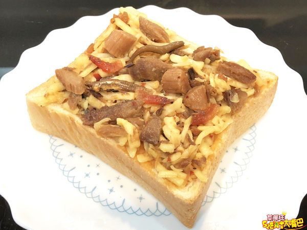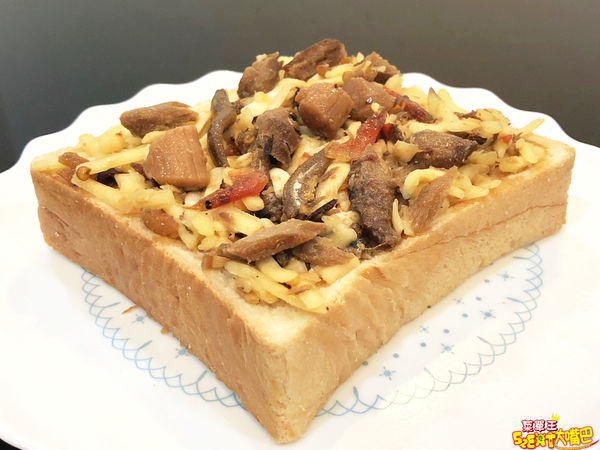 ▲覓覓食務所,為了滿足挑嘴的你,要讓你吃到不一樣的干貝海鮮厚片,土司上除了主角干貝、還搭配櫻花蝦、金鉤蝦、一夜干、小魚干、蛤乾等等...完全是其他地方吃不到的口味,辣度上也是大小朋友都可以接受的微小辣。
