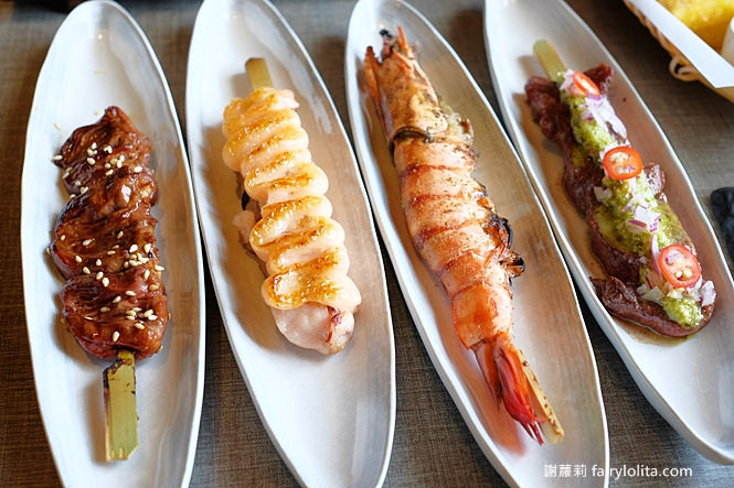 這道拼盤最大特色,就是一口氣可以吃到多種串燒烤物跟烤鮮蔬。