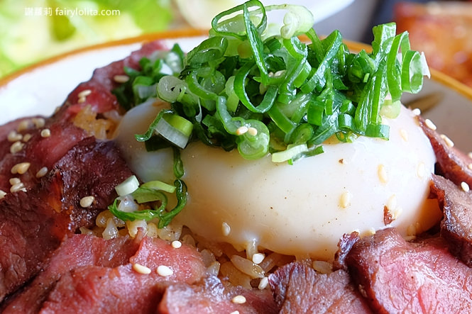 我自己蠻愛它咬起來嫩嫩的口感,聽服務小姐說,這牛肉在處理上有特別把筋挑掉,花費的時間也許較多、但整體表現則會更出色,單吃牛肉鹹度稍高,最好是把半熟蛋充份混在白飯裡,除了增加米飯濕潤感之外,也更能中和牛肉片帶來的鹹氣呦!