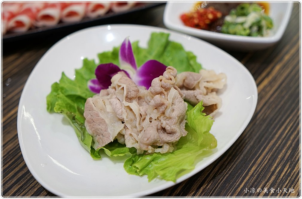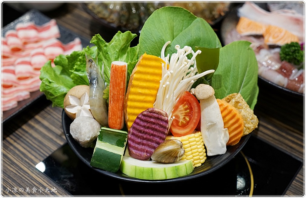 小胖鮮鍋不只是有著尚青ㄟ海鮮類,現切的原肉肉盤,就連菜盤也很堅持以時蔬為主