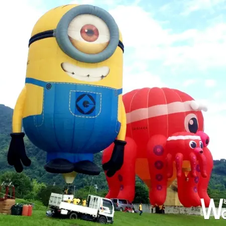 今年的熱氣球更多造型更豐富喔!開幕活動當天可以看到共24顆熱氣球齊聚鹿野高台,最期待的當然是小小兵啦XD