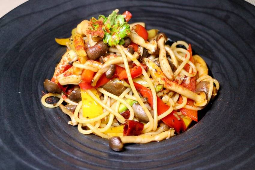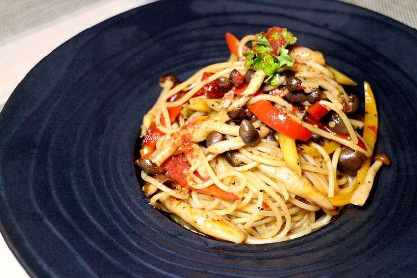 這麵條煮得軟硬適中,還有點彈牙,加上菇類、蘆筍及紅椒的搭配,口感一點都不無聊。最重要的調味,當然主要是墨西哥紅椒的辣味,那辣味實在太過癮了!那個辣帶著香,不僅不會令人因辣而停下來,反而會勾引著味蕾,令人一口接一口吃不停啊!艾方妮與友人真是愛慘這道義大利麵了!
