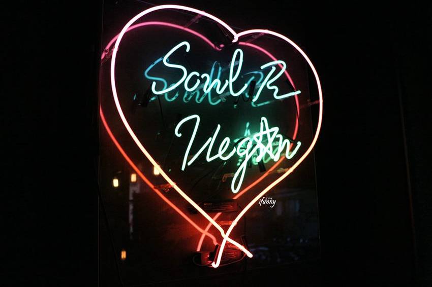 【邀約】Soul R. Vegan Café 靈魂餐廳位於正義國宅對面的巷弄中,離捷運忠孝復興站走路只要6分鐘。從店面外觀看來,以深色的木頭搭出落地窗內的霓虹燈光,感覺很像是餐酒館。尤其是最近世足賽事正夯,感覺這裡應該越夜越熱鬧才是!