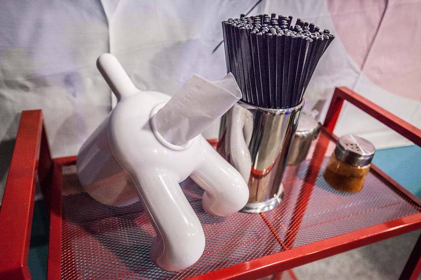 餐具請自取,這面紙盒也太好笑了,是從屁屁來抽面紙呢