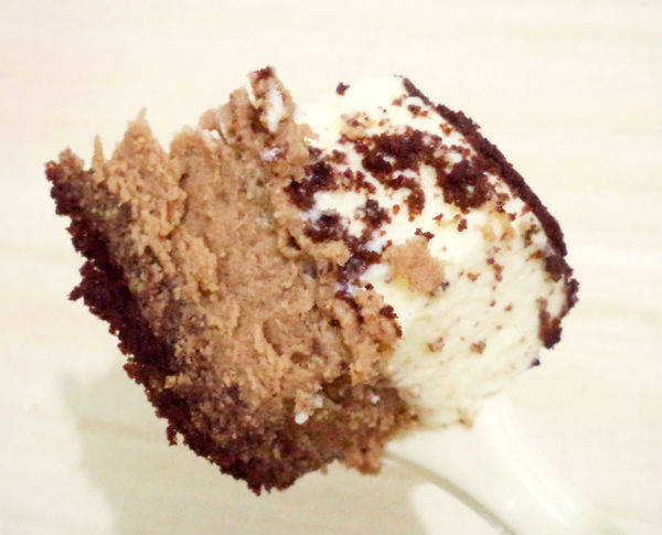 上層為義大利馬斯卡彭乳酪和北海道鮮奶油製成的慕斯,下層則是澳大利亞奶油乳酪和甜巧克力製成的烤蛋糕體