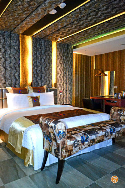 為了讓住客有不同的住房體驗,幾乎每間都有新創意在裡頭,像是金碧輝煌的流線造型,呈現優雅貴氣,而紫色浪漫房型也更顯舒適感,是市面少見的多風格旅店。