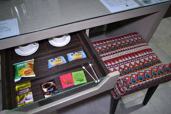 打開抽屜,有茶包、餅乾、咖啡等等都可以自行取用,熱水瓶、吹風機等等也一應俱全,生活機能十分便利。冰箱裡還很貼心的準備了飲料,都可以儘情暢飲喲!