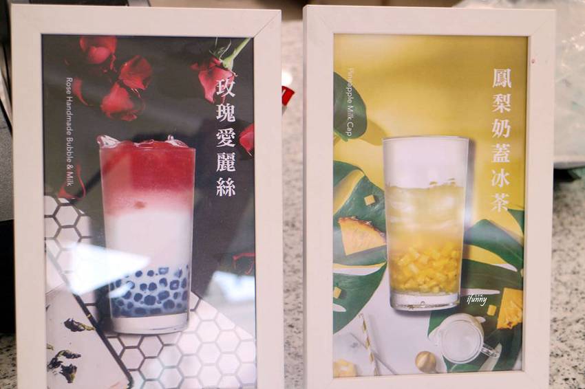 在草本茶集的櫃檯上,發現有幾款製作精美的飲品照片,看起來真是令人垂涎啊!