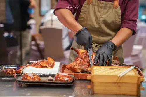 上桌時還香味四溢的火焰櫻桃鴨,色澤看來油亮誘人,口感肥嫩多汁。