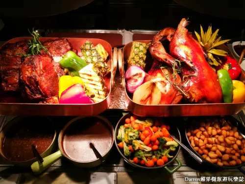 秀廚自助餐主要有3個buffet餐台,首先是以熱食為主的餐台,這裡有櫻桃鴨推薦必吃烤鴨,油脂香氣都很棒