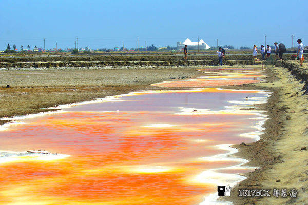 靠近橘紅色廢鹽灘水的鹽田地面是軟的,請勿踏入,以免腳陷下去,