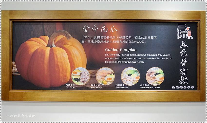 牆面上懸掛了店內八款湯頭其中之一,金香南瓜