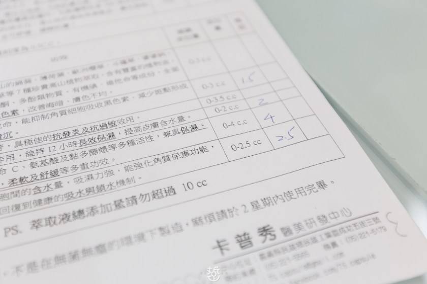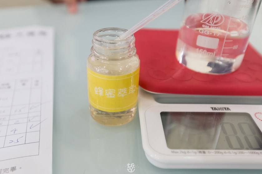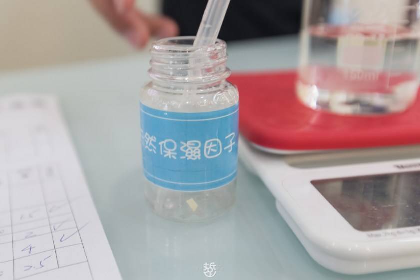 保濕面膜的體驗簡單來說就是選取A項的65g+B項的10g=75g,用磁石均質混合後,分成三等份倒入乾的面膜不織布中,並寫造製造日期與保存日期就大功告成啦。