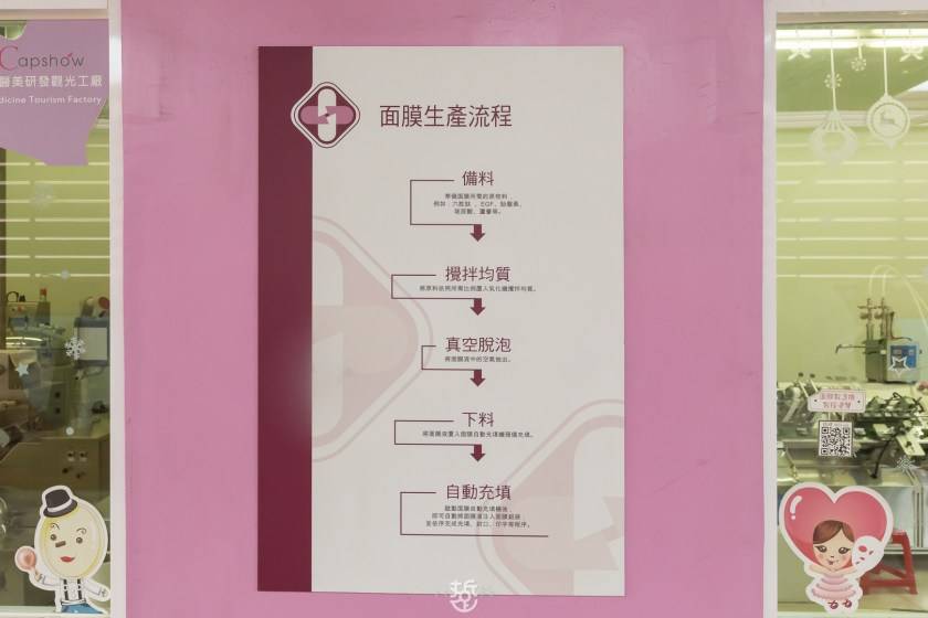 遊客除了參觀膠囊與面膜的生產線外,也可在商品展售區選購,價格幾乎是市價的5-6折。