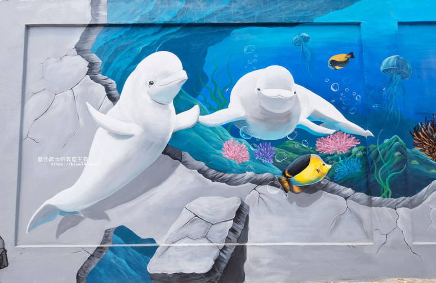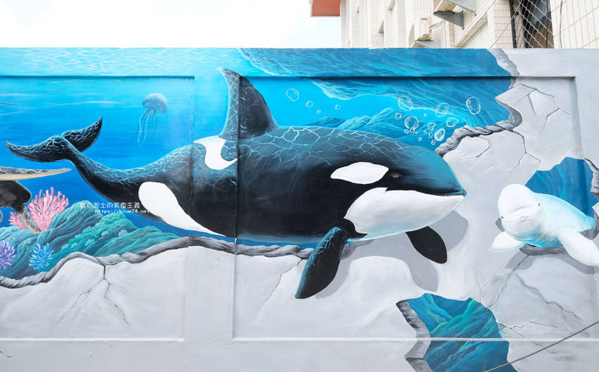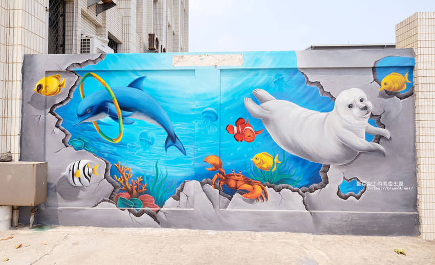 梧棲出現街頭版海洋風3D彩繪,台電68公尺牆面煥然一新