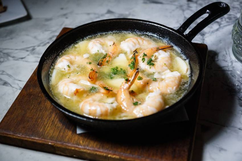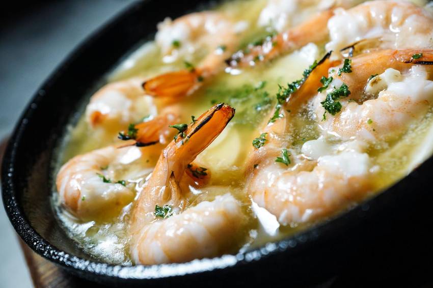 ▼氣泡酒蒜味蝦 $300