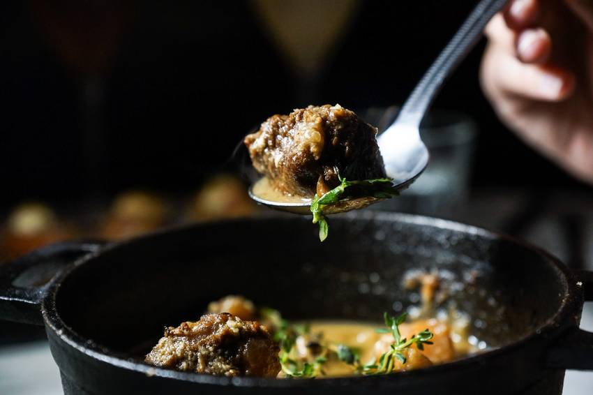 我們一致認同,這絕對是目前吃過最誘人的馬鈴薯燉牛肉!!!使用牛肋肉來燉煮,不得了的軟嫩啊~又帶有嚼勁!牛肋事前先以紅酒滷過,因此肉質才達到如此嫩口。接著是關鍵的Sauce,馬鈴薯泥濃郁的韻味及香濃肉汁融在其中,還帶有些許肉末,並且能感受到炭燒的香氣!不論是單獨享用,或是沾著麵包享用,都相當銷魂。