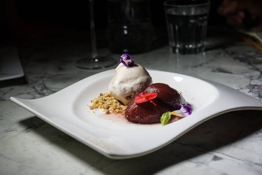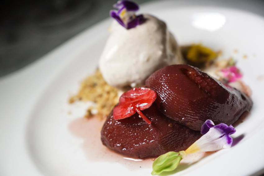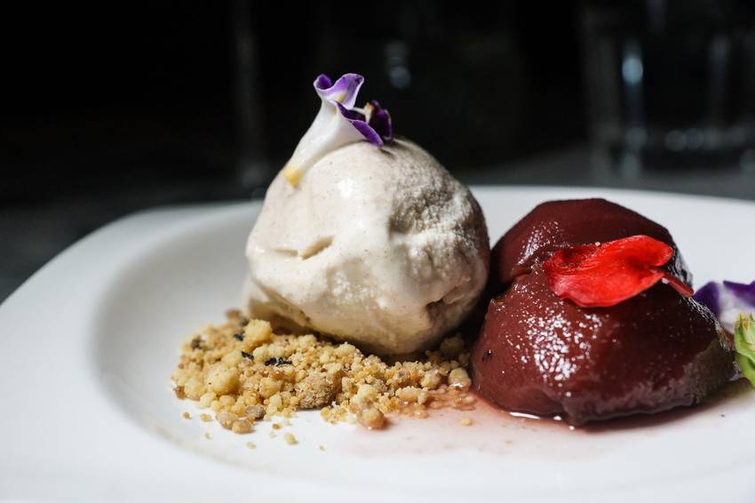 ▼煙燻紅酒桃子與肉桂義式冰淇淋 $220