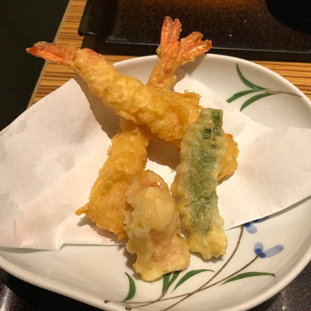 握壽司和海老天婦羅的定食組合在日本當地的餐廳是很常見的組合,但在台灣卻很罕見,去年在京都的木村屋就吃種壽司定食套餐,這次見到彌生軒也推出這套菜色,當然不能錯過!