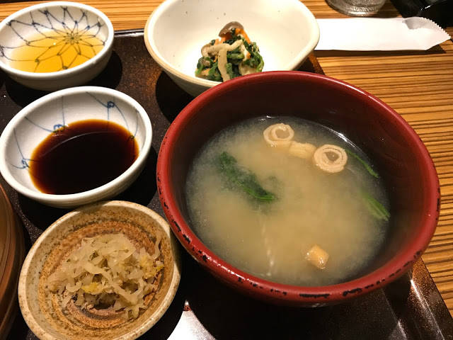 搭配著質感很好的涼菜芝麻菠菜、榨菜絲和味噌湯,整套吃起來讓人覺得很滿足。