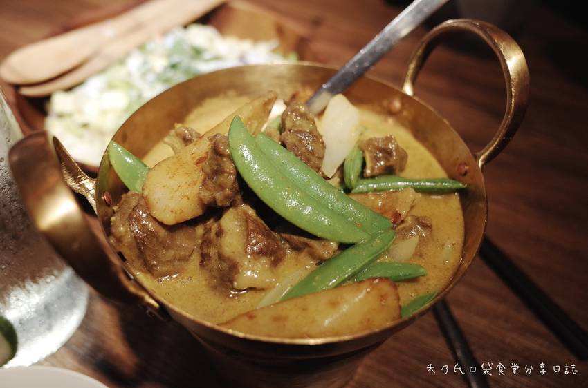 咦?這道菜名唸起來怎麼有點怪怪的呢,哈哈!「我要咖哩娘」,希望點菜的時候長輩聽見不會誤會,取的名實在太有趣了!!裝盛方式有種古代貴族用膳的Feel,也蠻符合印度金屬器皿的感覺,然後我必須要很真誠的說,咖哩醬汁真的超級下飯,很好吃!