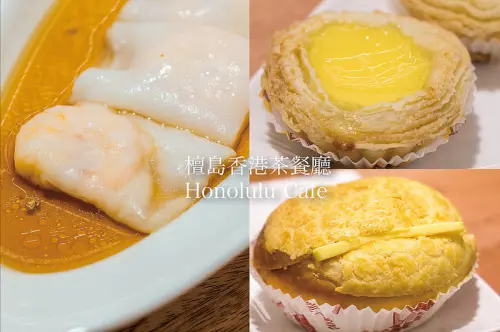 法式西多士:有別於正統的法式吐司,這法式吐司吃起來溫熱,裡面夾有顆粒帶鹹味的花生,外表微酥香內嫩的鬆軟吐司,再淋上滿滿糖漿和一小塊奶油提味,外甜內鹹衝突感比檀島菠蘿油明顯很多,非常搭配,雖然這道熱量超高也很油膩,可是我覺得拋開熱量值得一吃 (大推)