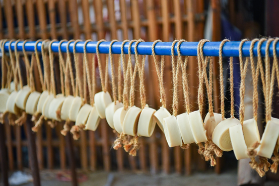 過了竹子牆看到的是農莊物盡其用打造出來的環保肥皂