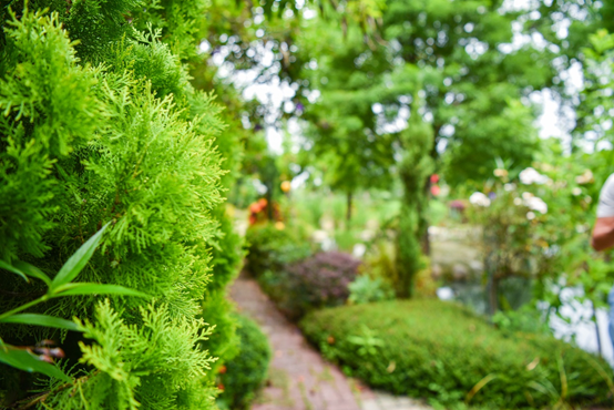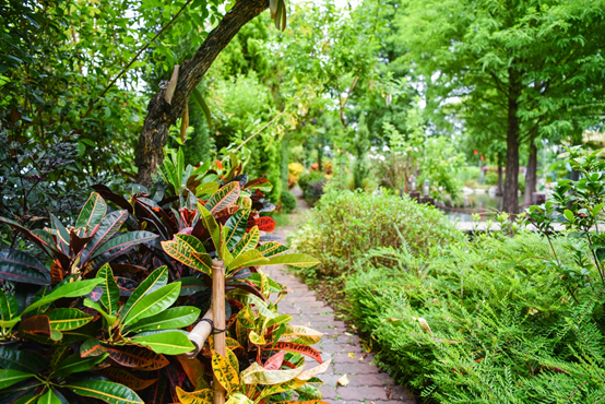 陽光撒在上頭的壓克力板上加上一旁的綠樹陪襯
