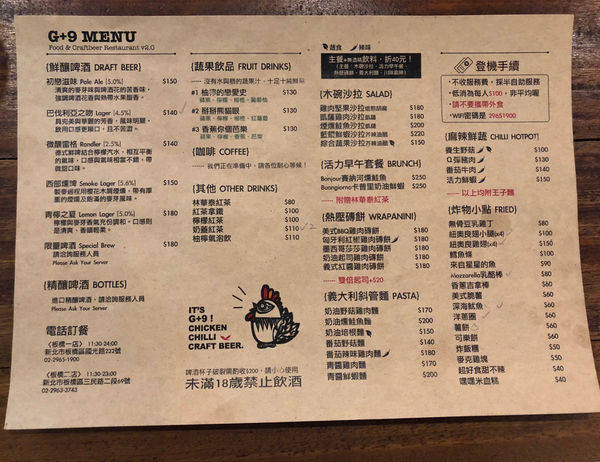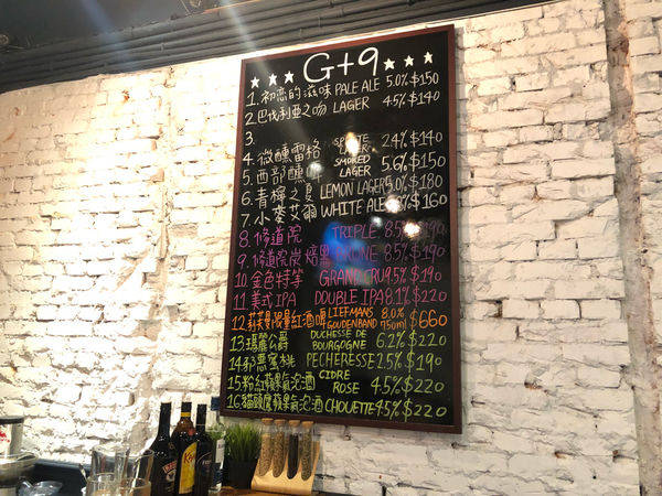G+9的啤酒很多,第一次來不知道要怎麼挑選,每一種都可以請老闆介紹,店家自己釀的鮮釀啤酒可以試喝,🍻🍻🍻