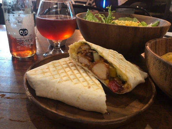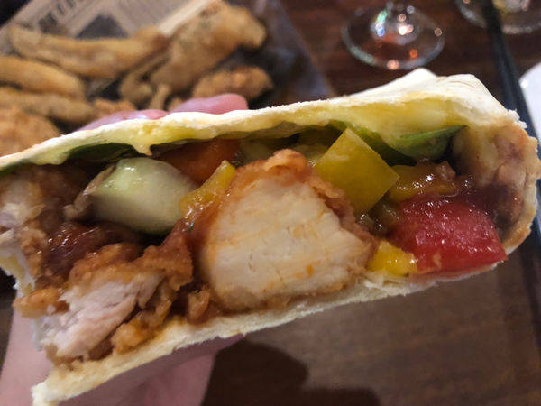 餅皮是由超級大塊的墨西哥捲餅製成,包覆著鮮蔬和墨西哥莎莎醬,還有超級大塊的雞肉,