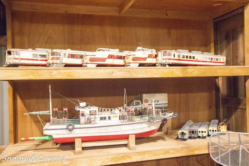 有飛機、船、戰車,還有哥吉拉頭的模型,