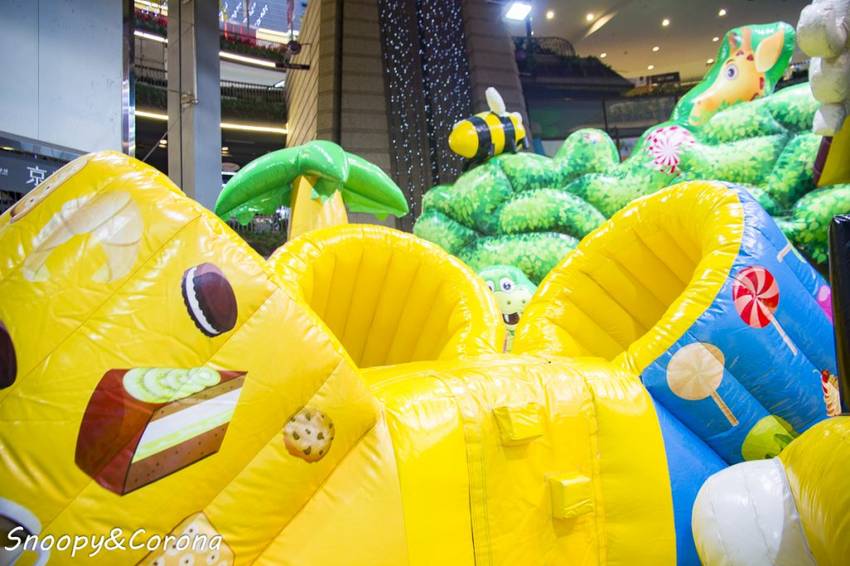 B3地心引力表演場以糖果森林氣墊和爆米花氣墊迷宮2座超大型氣墊組成,