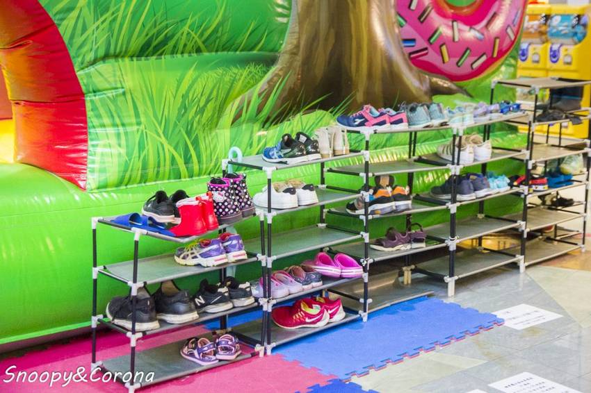 要進入氣墊區的大人小孩都需要穿襪子,如忘記帶現場也有販賣,