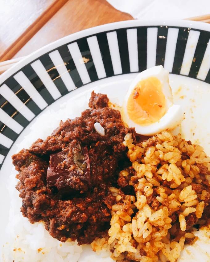 據說日本人吃乾咖哩的時候,很多都會配上半熟蛋或是生蛋,中島也有哦~
