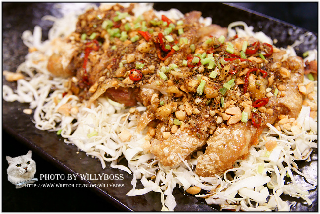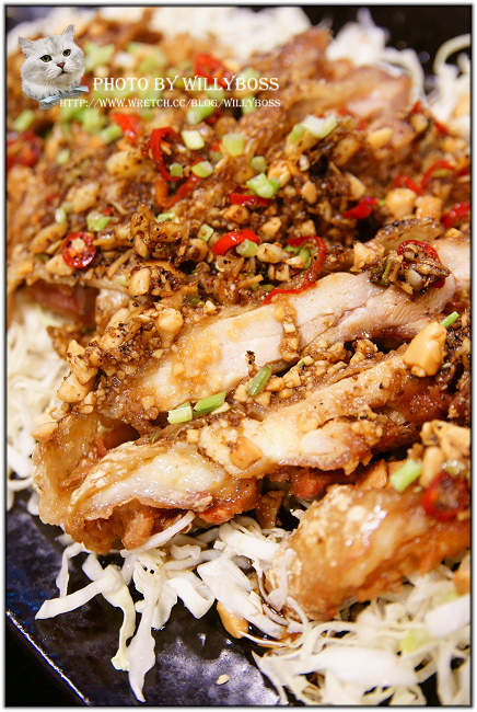 椒麻雞160元,現在常見的泰式料理或是雲南料理店的椒麻雞,通常是將炸好的雞肉放在酸酸辣辣的醬汁裡頭,有的甚至沒有辣,當然更別提會有麻這一味,而Bbar就很有趣,難得的底下醬汁不多,而炸雞腿肉上頭則是有些類似孜然粉之類的蒙古路線香料,吃起來別有一番風味,又小辣中帶有麻,算是很難得吃到的口味喔!
