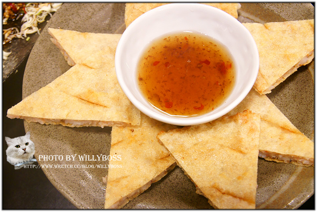 月亮蝦餅200元,比較貴些的菜色,但看到蝦餅上桌就一目瞭然,用料完全沒有偷工減料,厚實的蝦餅裡頭吃的到塊狀的蝦肉喔!炸得也很酥脆,沾著甜甜的醬吃更對味。