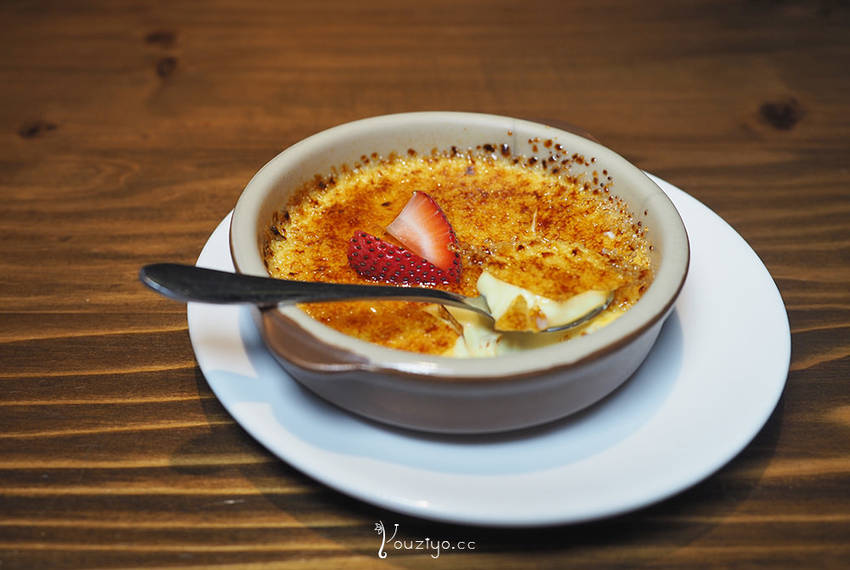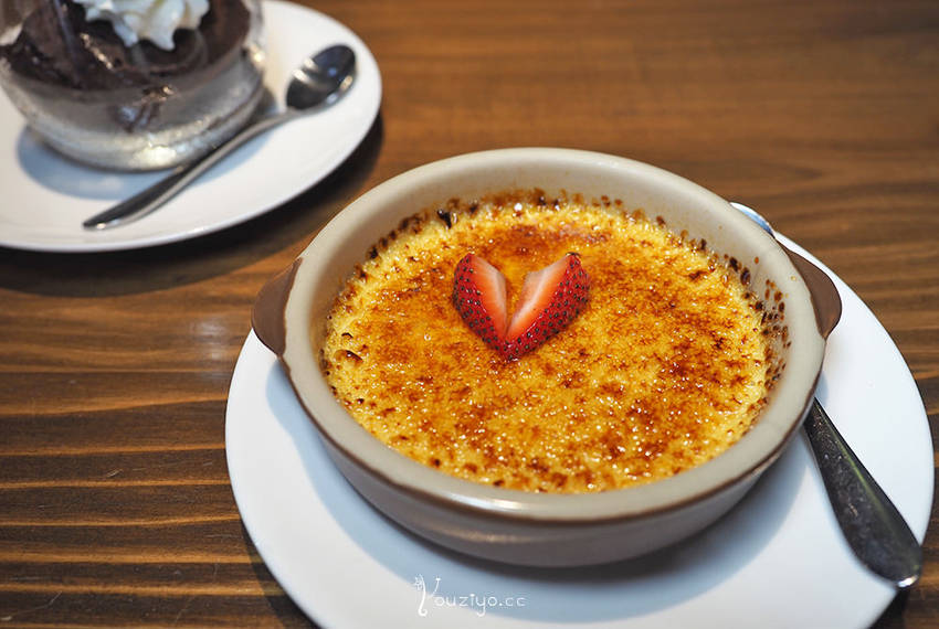 焦糖化的金黃色澤,拿起湯匙輕輕敲開,裡面是香醇綿密的布蕾,不會太甜,整個吃完也不會有太甜膩的罪惡感。