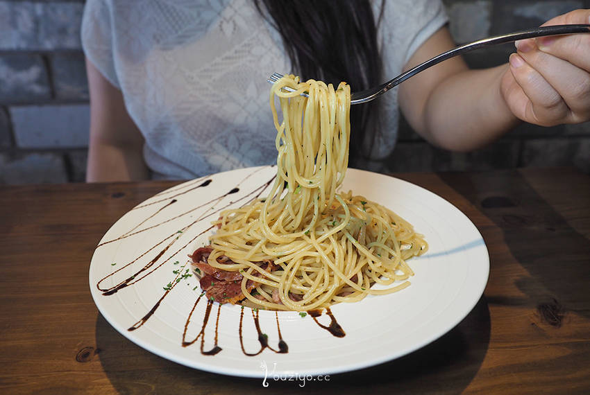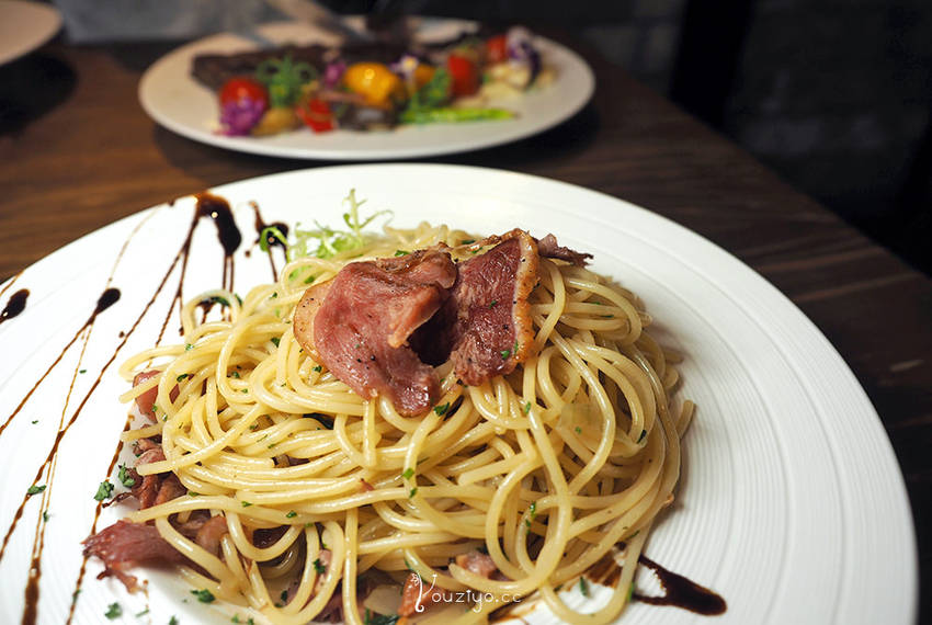 JK Studio新義法料理的經典料理,少了紅醬白醬的膩口,夏天吃起來更為清爽。麵條不會太軟爛,帶了點嚼勁,是我喜歡的義大利麵口感。片狀鴨胸不至太老硬,反而更有煎炒後的香氣。