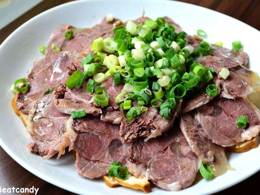 一盤滿滿滷牛腱是不是超級羨慕?底層則是份量超多的必備滷味-豆干。老闆獨門研發的白滷,口味不會太重,能吃到單純食材味,更重要的是一旁的蔥醬,有辣椒的辣、蒜頭的嗆、香菜的獨特香氣、香油的點綴,將醬料用肉包裹住一併入口,來人阿!給我一瓶酒阿!