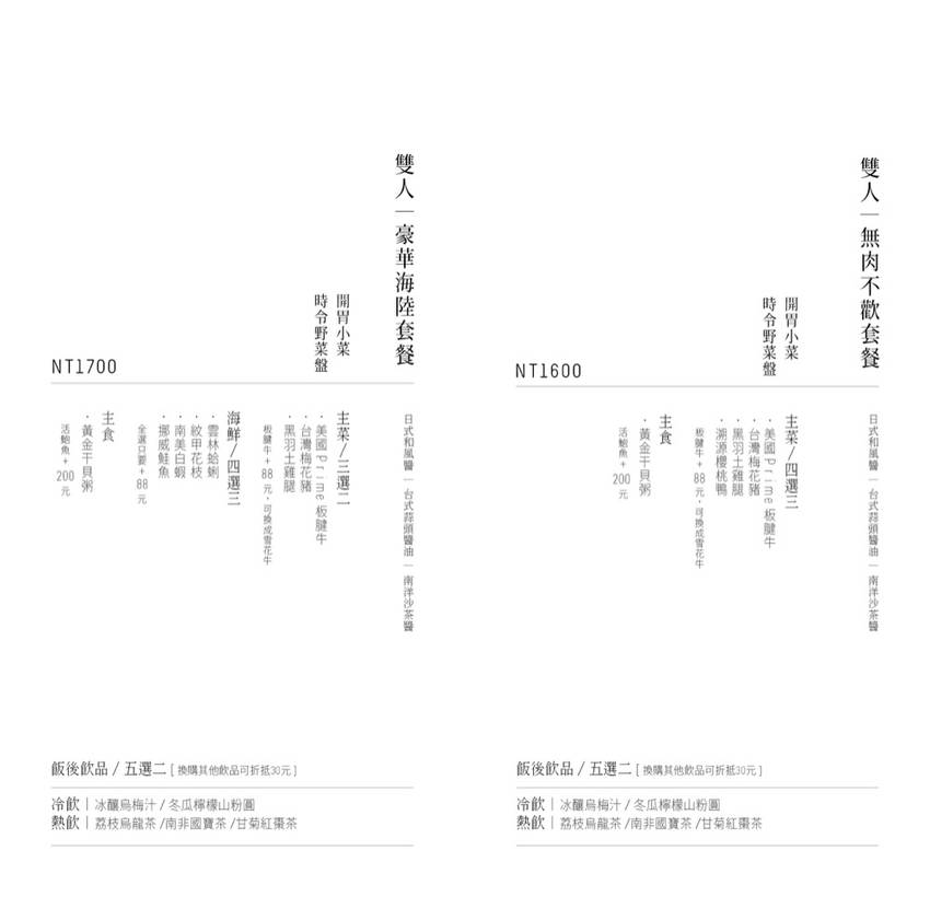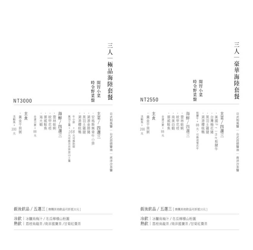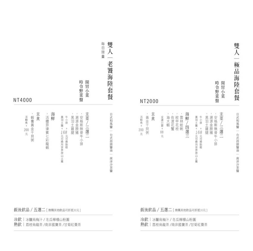 主菜/三選二、海鮮/四選三、主食/黃金干貝粥