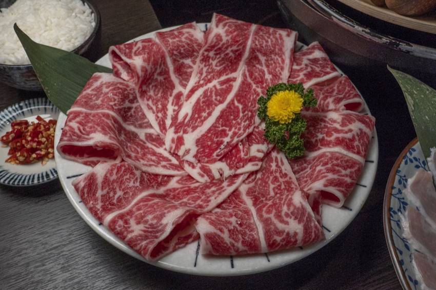 無骨牛小排看那油花就感覺非常可口,油花好美啊,涮擠下以後那肉質軟嫩,不用沾醬就可以嚐到牛肉的鮮甜!