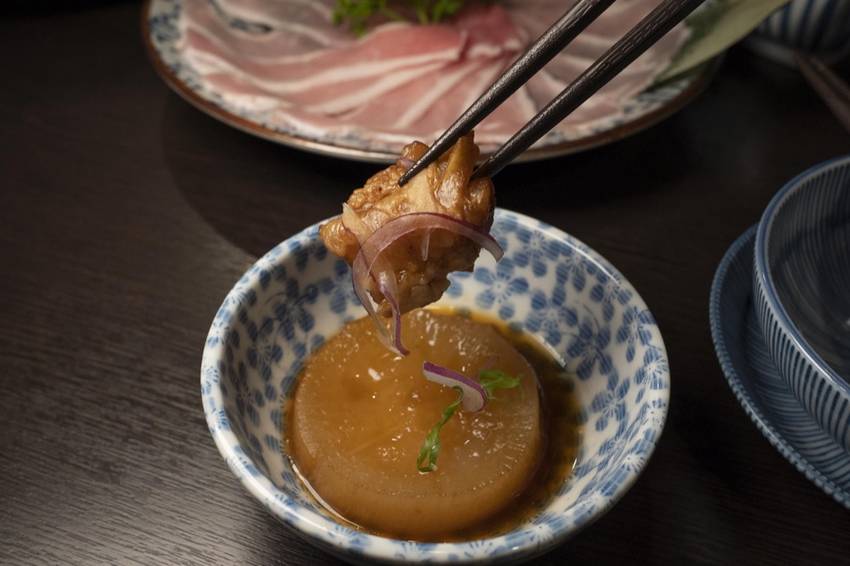 白蘿蔔則是吸附了湯汁,蘿蔔的甜味與醬汁的鹹搭配得如此恰當,像是日式和風般的開胃小菜☺️