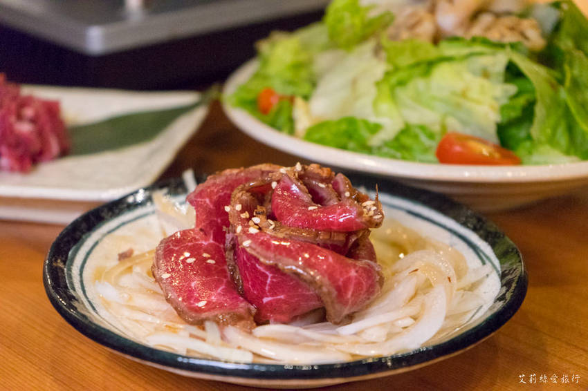 牛肆將生牛肉捲成玫瑰花狀,嚐起來帶有甜味但是沒有可怕的血腥味,生洋蔥好甜又清脆完全不嗆辣,兩者可說是完美組合