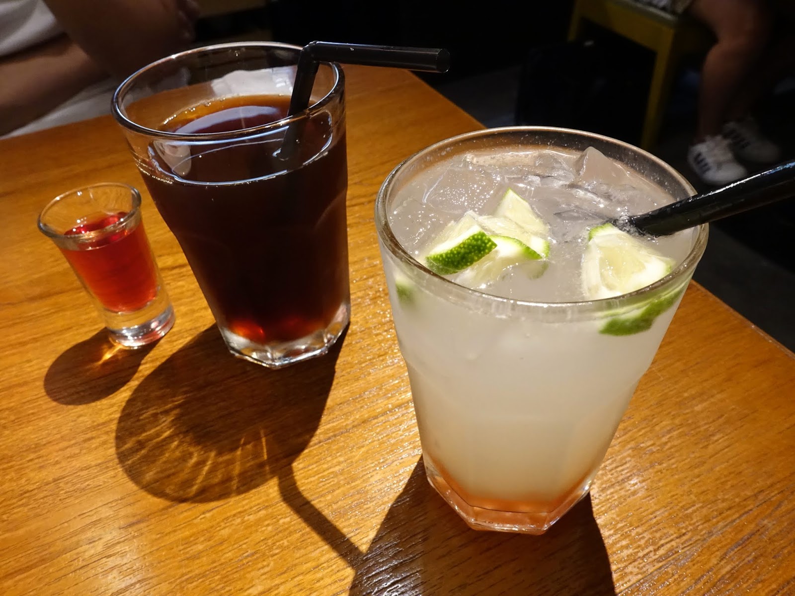 單點的兩杯飲料,老舖紅茶和蜜桃檸檬口味的蘇打飲料,老舖紅茶喝起來很像小時候喝到的決明子紅茶,另一杯帶著氣泡的蘇打飲料很解辣,我覺得吃川菜就是要點杯氣泡飲料來配才過癮!