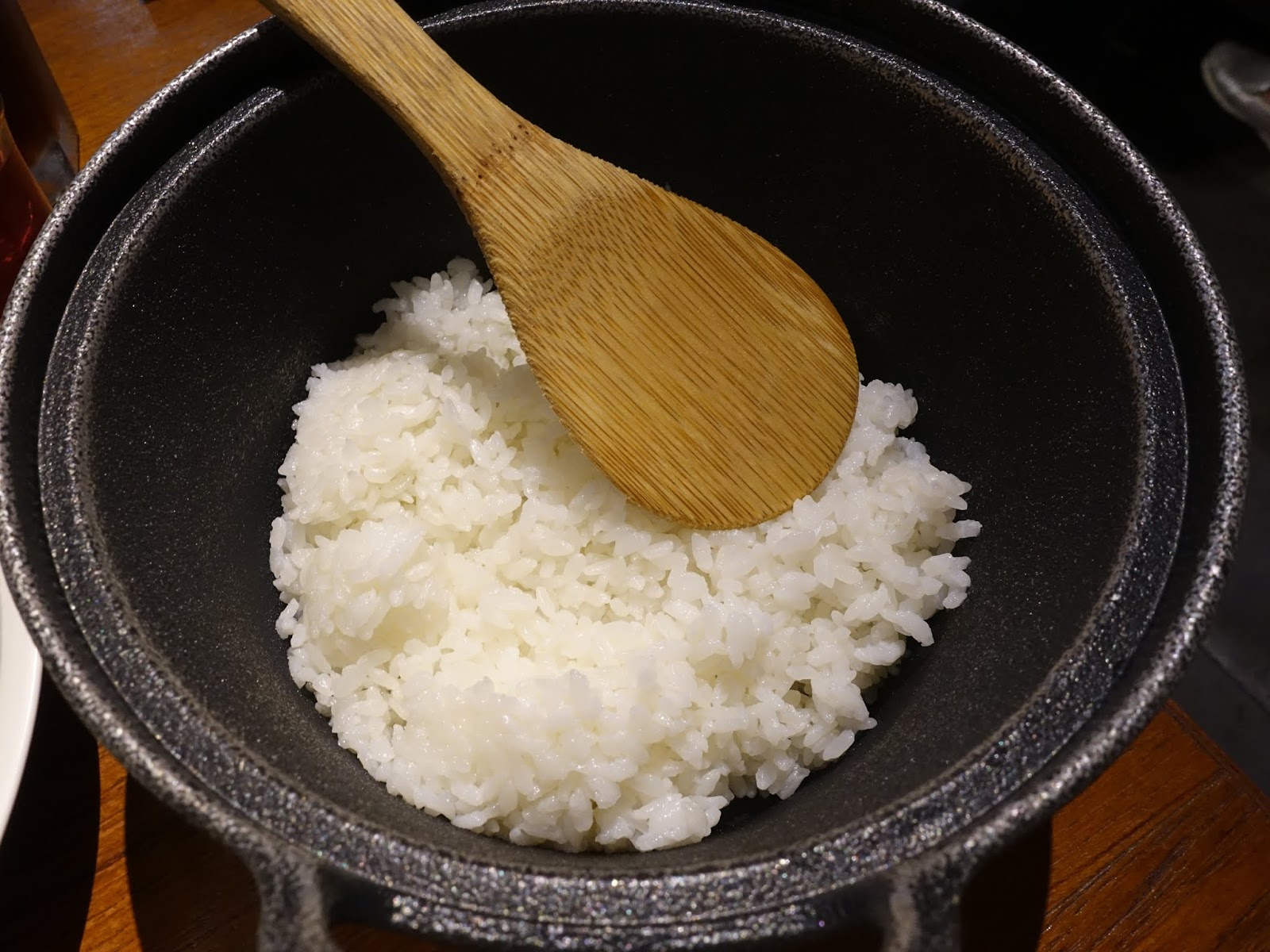 兩人份的白飯,可以無限續加,米飯煮得粒粒分明,有一定水準!