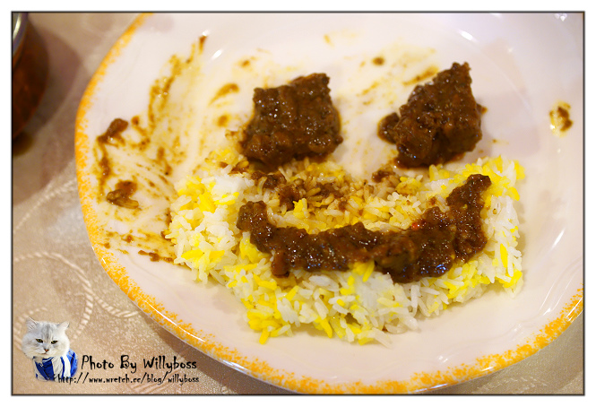 南洋牛肉咖哩270元,濃稠的像肉醬般的咖哩有椰奶香味,和印度特殊的香料搭配出很順口的好滋味,在其他地方很難吃到的口味,這天算是開了眼界:P。
