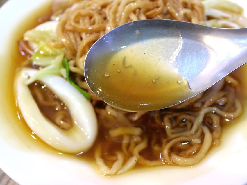 花枝焿湯 的色澤很清,喝起來也是像 鱔魚意麵 的湯頭一樣,帶著酸香,不過甜膩,我喜歡!