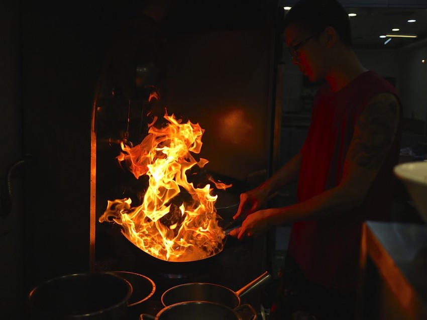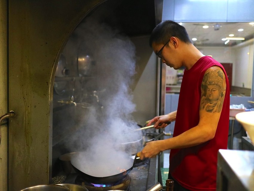 【福來鱔魚-郡平店】 的年輕老闆 是 福來鱔魚的 第三代,酷酷帥帥的,話比較少,不過 看他炒鱔魚的畫面 覺得有夠厲害!